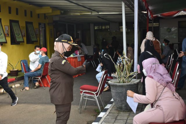 Kejaksaan Negeri Karawang jadi salah satu sentra vaksinasi untuk mempercepat herd immunity di Kabupaten Karawang. Hari ini, Selasa (13/7), 250 warga Karawang mendapatkan vaksinasi di Kejaksaan Negeri Karawang.