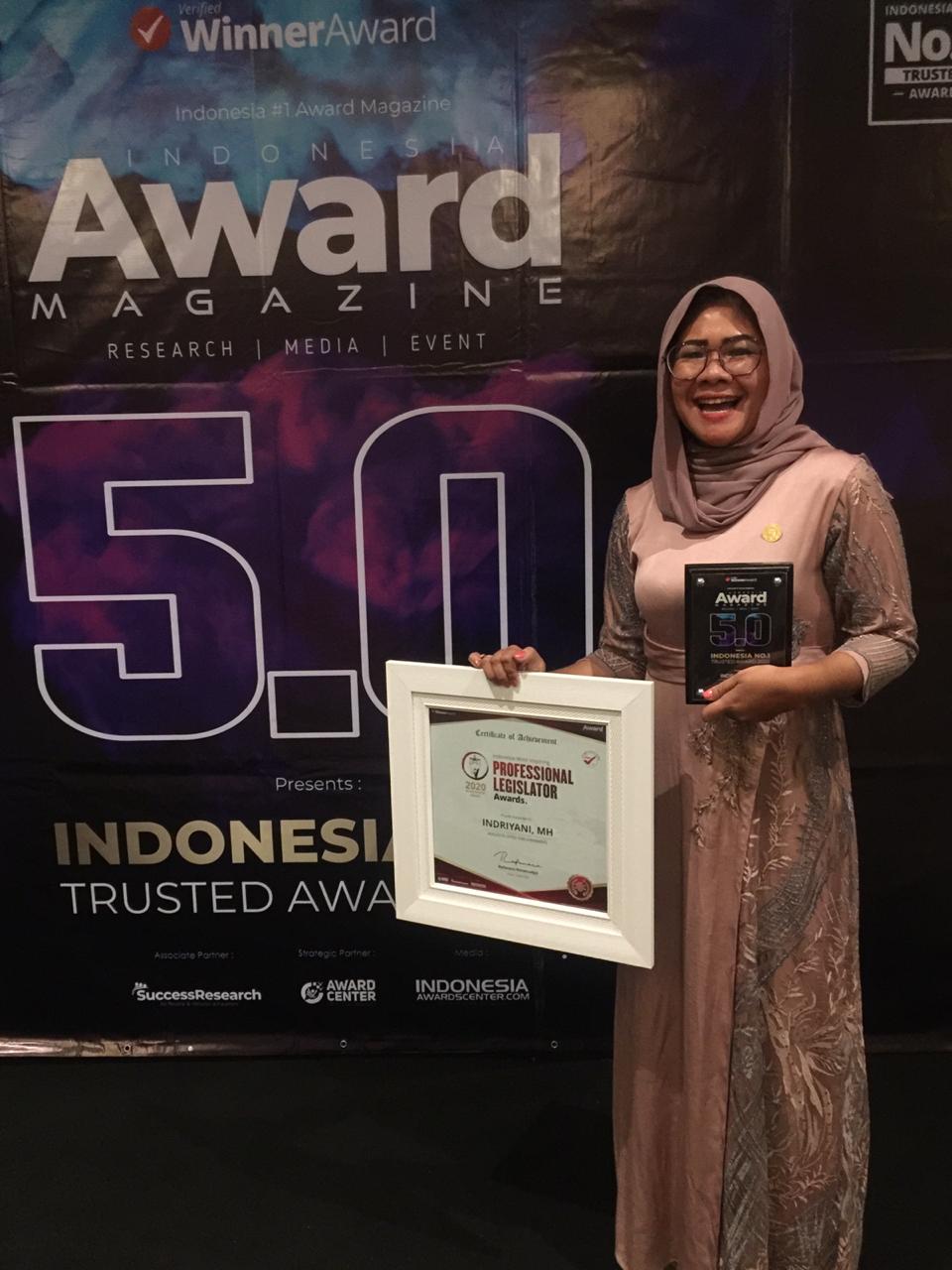 “Penghargaan ini saya dedikasikan kepada keluarga besar dan juga kepada para pemilih yang sudah Alhamdulilaah dua periode menjadi wakil rakyat,” tutur Indriyani.