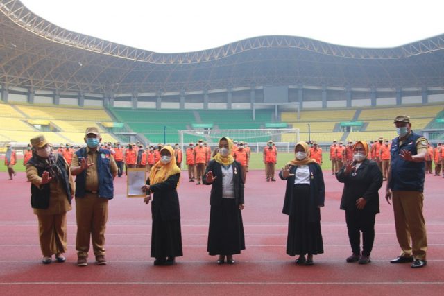 KOTA BEKASI – Wakil Wali Kota Bekasi Tri Adhianto pimpin apel pagi, dirangkai dengan pengukuhan HIPKI dan penyerahan piagam purna bakti di Stadion Patriot Chandrabaga, senin (29/03/2021).
