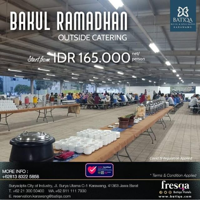 Demikian pesan yang kami dapat sampaikan kami berharap wargi BATIQAR karawang dapat menikmati dan menjalankan ibadah dibulan suci ramadan secara aman dan nyaman di FRESQA RESTAURANT, BATIQA Hotel & Apartments Karawang.