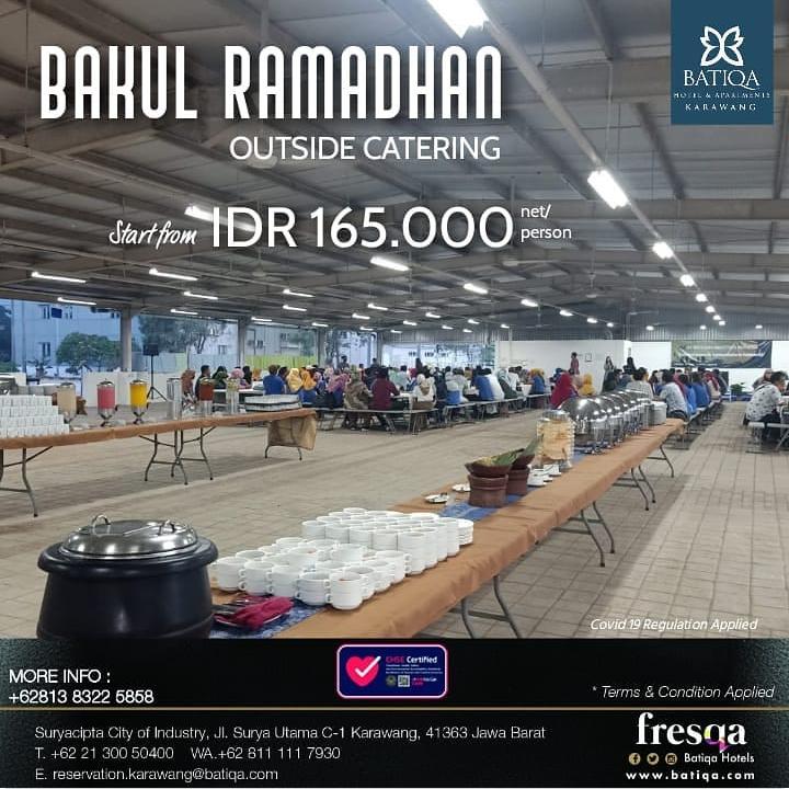 Promo ini bernama “BAKUL RAMADHAN 2021” (BATIQA KULINER RAMADHAN 2021), Harga dibandrol mulai dari Rp. 45.000 nett/orang – Rp. 165.000 nett/ orang, jadi Wargi BATIQAR bisa memilih harga yang disesuaikan dengan budget masing-masing.
