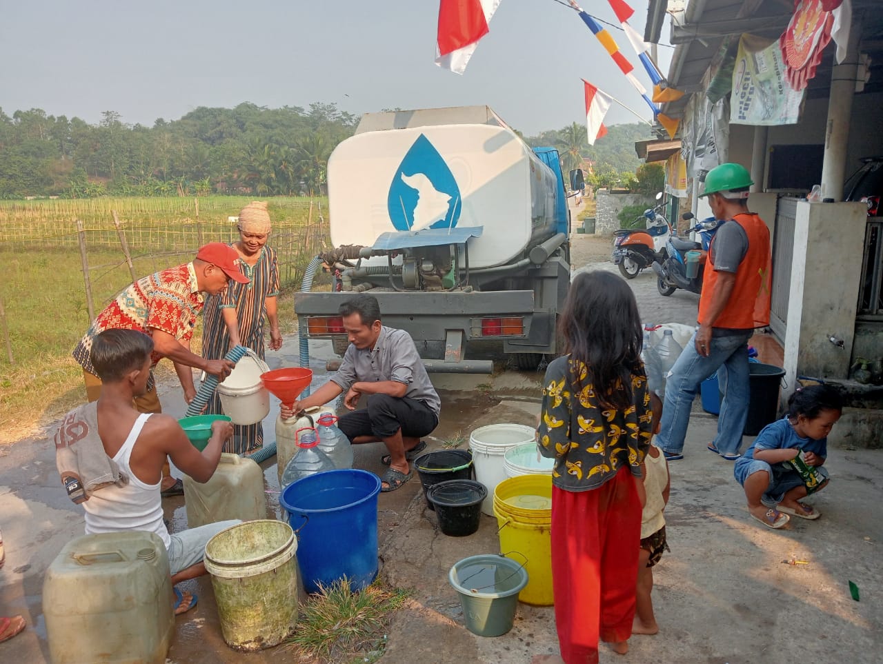 Sementara saat ini keempat desa tersebut telah mendapat bantuan air bersih dari beberapa instansi seperti PMI, BPBD, PDAM hingga Polres Kabupaten Karawang.