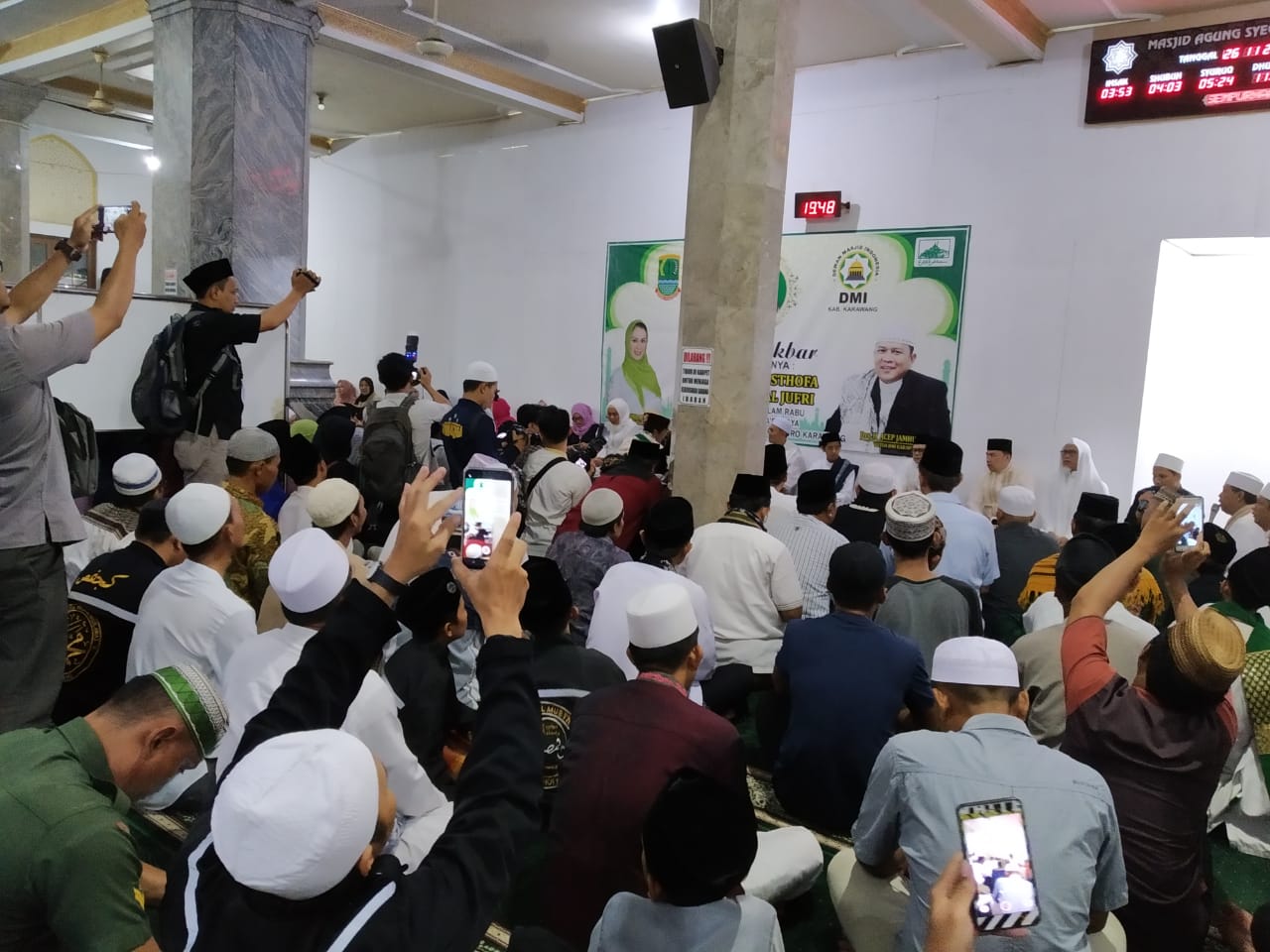 BEPAS, KARAWANG – Ribuan warga memadati Masjid Syech Quro di Alun-Alun Karawang. Mereka hadir untuk menggelar doa bersama dan tahlilan tujuh hari berpulangnya Kyai kondang asal Plered, Purwakarta Habib Musthofa Al-Jufri.