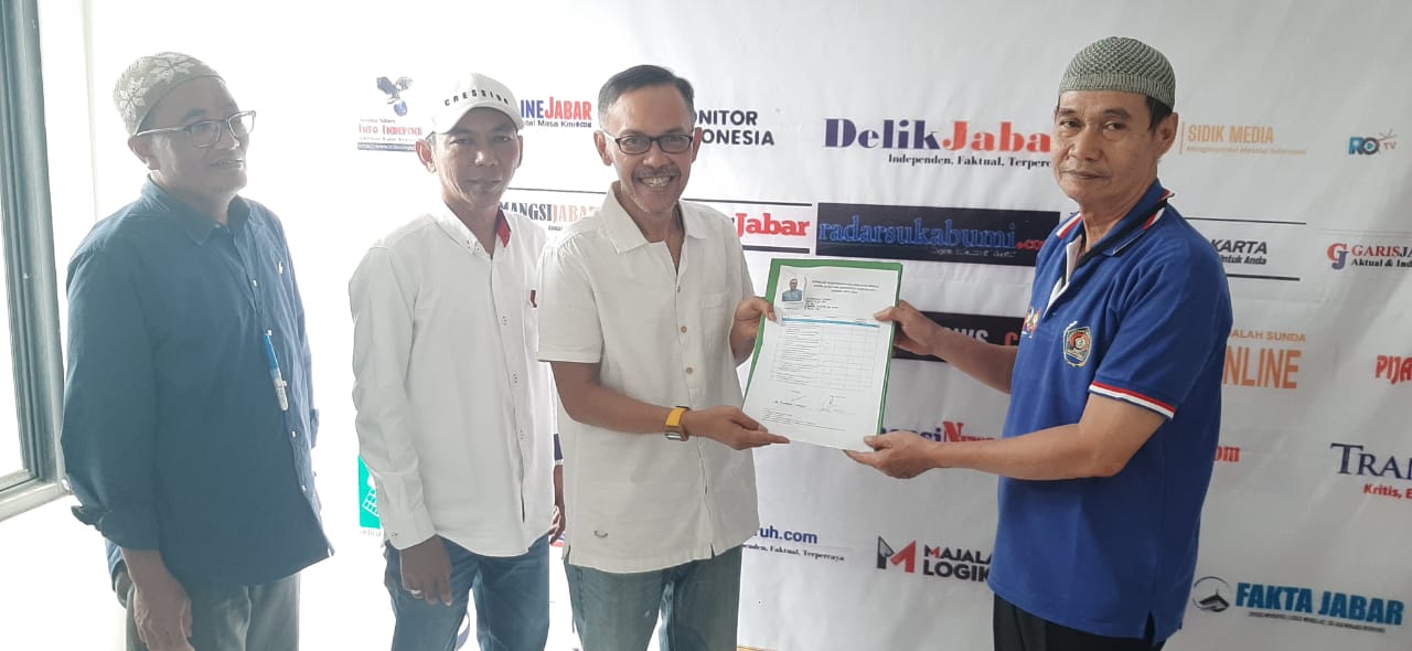 Salah satu calon Ketua PWI Kabupaten Purwakarta Adi Kurniawan Tarigan yang telah memenuhi persyaratan administrasi organisasi dan persyaratan pendaftaran menyerahkan berkas pendaftaran kepada panitia pelaksana konfrensi PWI.