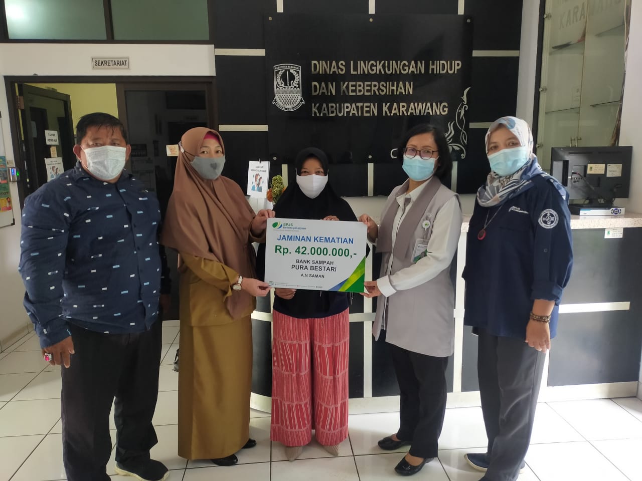 Beranda Uncategorized BPJAMSOSTEK Karawang Serahkan Santunan Kematian Rp42 Juta Kepada Relawan Bank Sampah