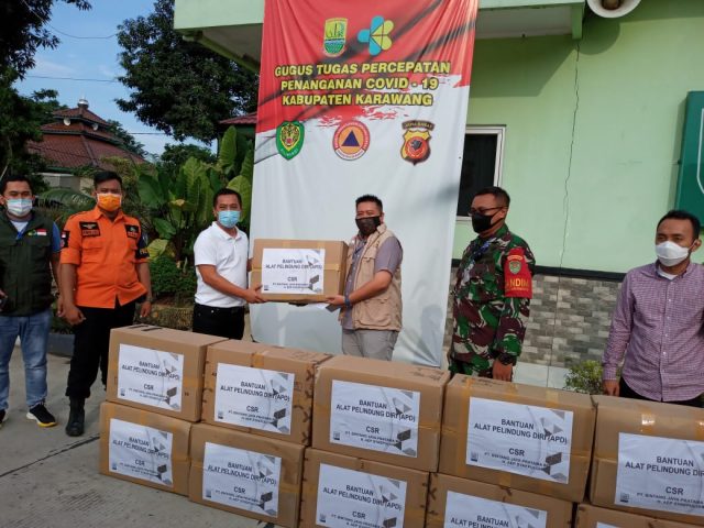 Berkaitan dengan itu, H. Aep Syaepulloh melalui CSR (Coorporate Social Responsibility) PT Bintang Jaya Pratama Inc. memberikan bantuan 2.000 hazmat suit, Selasa (22/4) ke tim gugus tugas di Makodim 0604/Karawang.