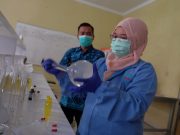 Mahasiswa jurusan Farmasi UBP Karawang sedang membuat cairan...