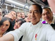 JAKARTA- Presiden RI Joko Widodo (Jokowi) bersama para pegiat seni tanah air menjajal moda transportasi lintas rel terpadu (LRT).