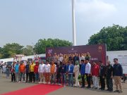 KARAWANG- Komisi Pemilihan Umum (KPU) Kabupaten Karawang menggelar kegiatan Kirab Pemilu 2024 di Lapangan Karangpawitan, Selasa (7/11/2023)