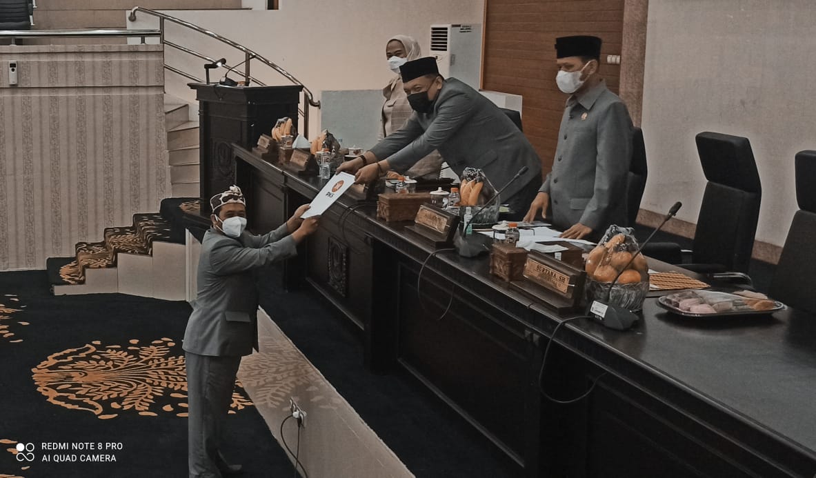 KARAWANG-DPRD Kabupaten Karawang menggelar Sidang Paripurna tentang LKPJ APBD Karawang tahun 2020, Jumat (25/6/2021). Pada kegiatan ini, hanya Pimpinan DPRD serta Ketua Fraksi atau yang mewakili yang diperbolehkan hadir secara langsung.