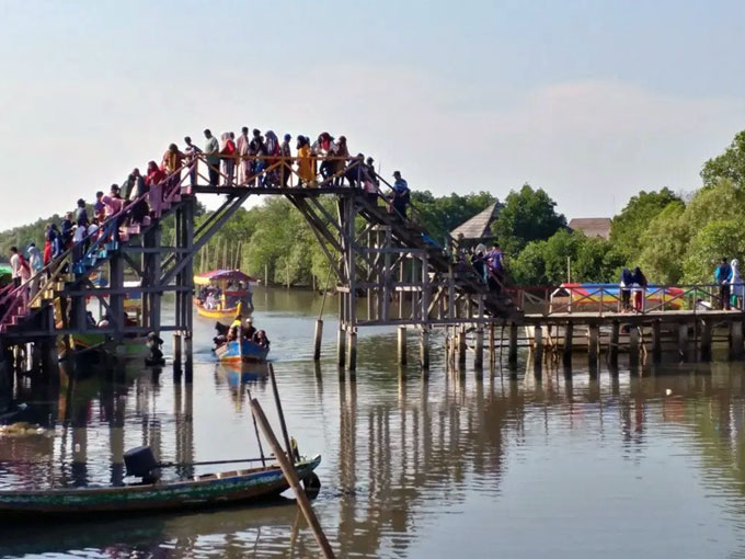 Di kawasan seluas 7,3 hektare ini, terdapat jembatan sepanjang 230 meter yang bisa dilintasi pengunjung, sambil menikmati keasrian hutan mangrove.
