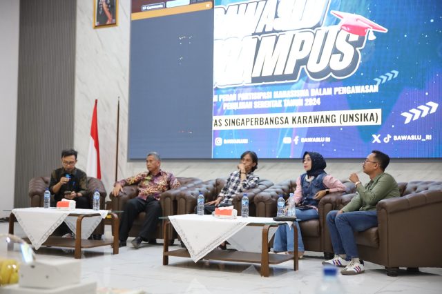 KARAWANG- Bawaslu RI menggandeng Universitas Singaperbangsa Karawang (Unsika) mengelar acara Bawaslu Ngampus di Aula Husni Hamid Pemda Karawang.