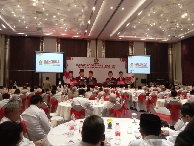 KARAWANG – Partai Gerindra Provinsi Jawa Barat menggelar Rapat Koordinasi Daerah (Rakorda) di Hotel Mercure Karawang pada Senin, 13 Mei 2024.