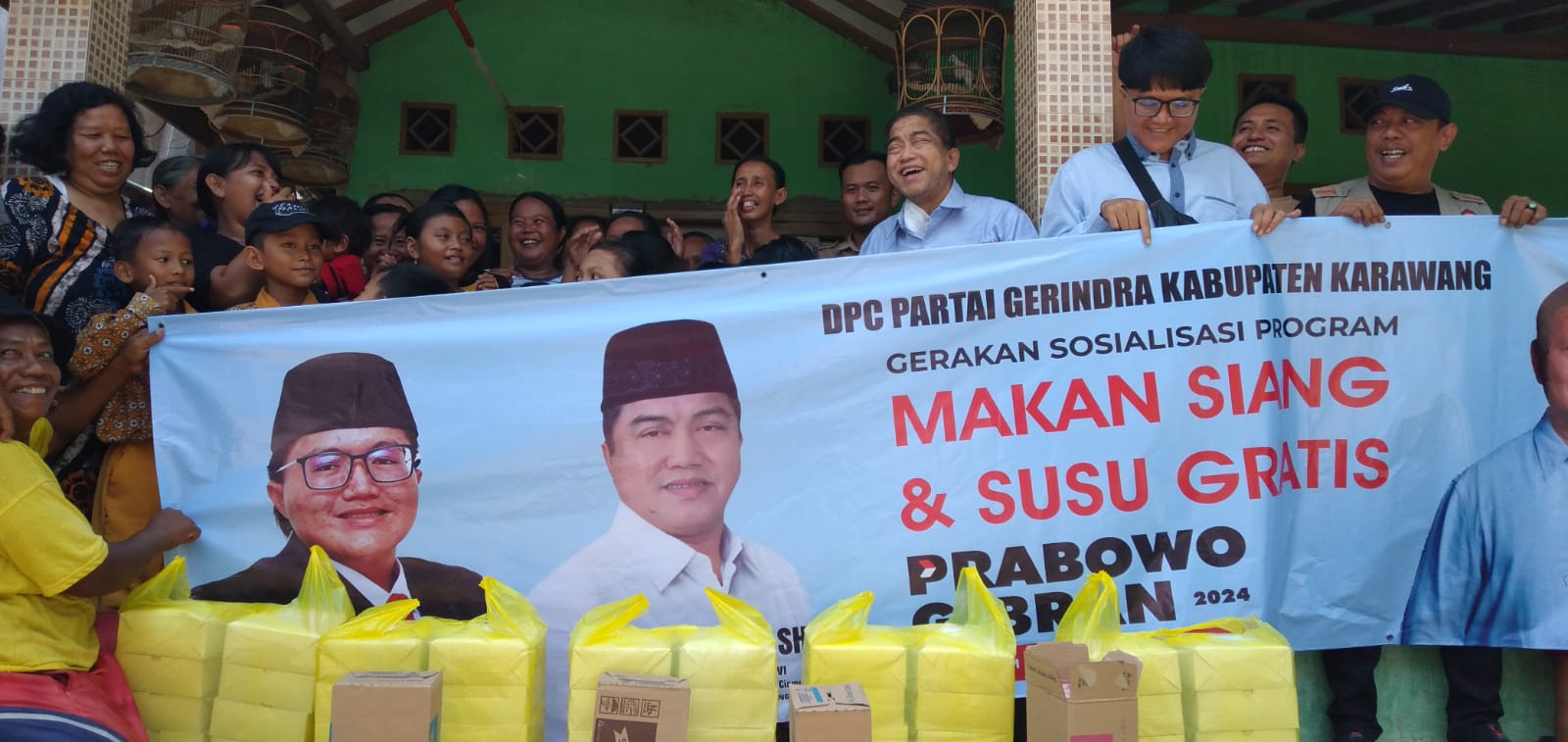 Ketua DPC Gerindra Karawang, Ajang Supandi mengungkapkan kegiatan bagi-bagi makan siang dan susu merupakan salah satu bagian dari program Calon Presiden (Capres) Prabowo Subianto dan Calon Wakil Presiden (Cawapres) Gibran Raka Buming Raka.