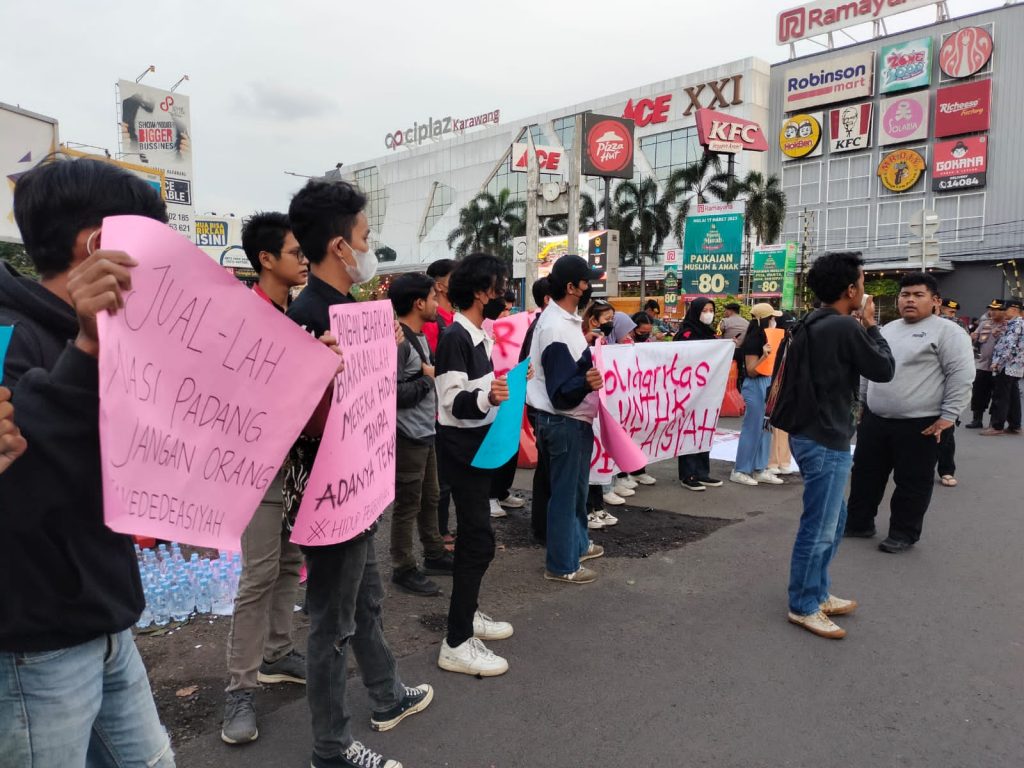 Aksi massa yang digelar di Bunderan Mall Ciplas Karawang juga mengecam tindakan pengancaman yang dilakukan oleh pihak pendamping sponsor.