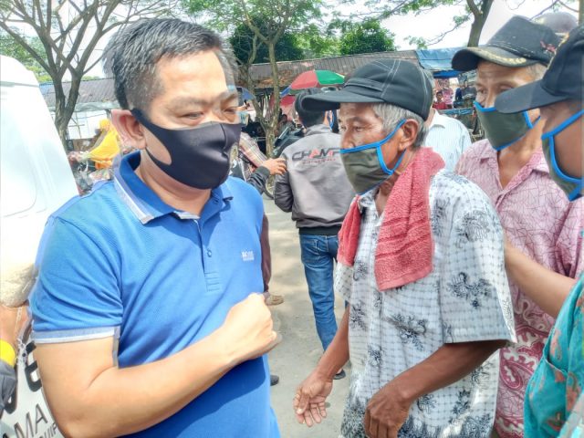 KARAWANG, BEPAS- Di hari lahir Proklamator RI, Soekarno, 6 Juni 1901-6 Juni 2020, bakal calon bupati Karawang, H. Aep Syaepuloh membagikan beras dan minyak goreng kepada ratusan tukang becak dan ojek di sekitar tugu dan pasar Rengasdengklok.