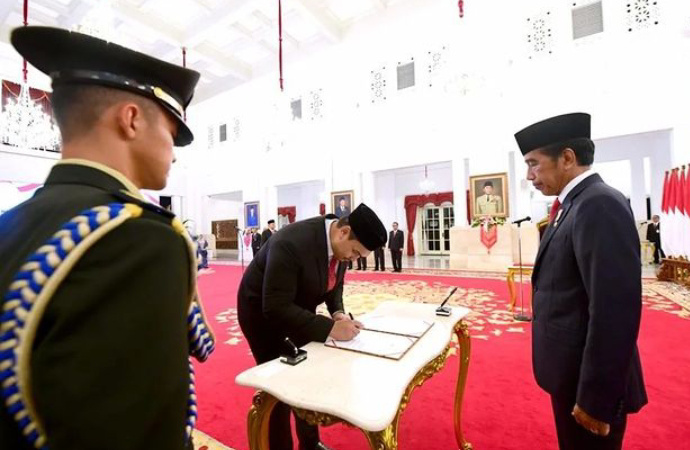 JAKARTA – Presiden RI Joko Widodo (Jokowi) melantik Ario Nandito Ariotedjo atau Dito Ariotedjo sebagai Menteri Pemuda dan Olahraga (Menpora), di Istana Negara, Jakarta, Senin (3/4/2023)