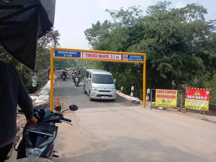 KARAWANG – Jembatan Bailey Cicangor Karawang yang sempat rubuh kini kembali dapat dilintasi, meski dengan pembatasan kendaraan yang melintas.