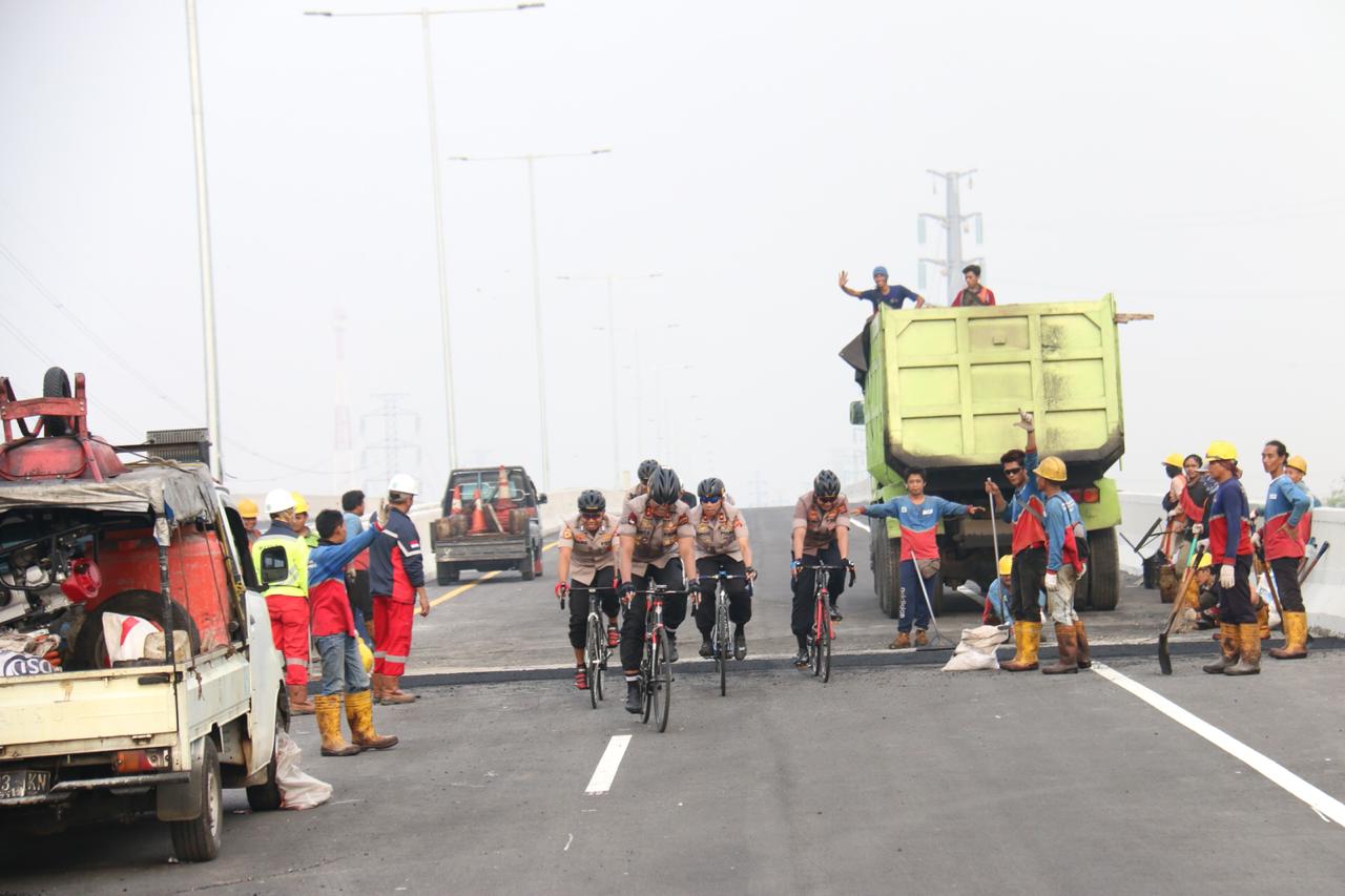 Pada kesempatan yang sama, Kapolda Jawa Barat Irjen Pol Drs Rudy Sufahriady berrsama Wakapolda Jabar serta Karo Ops, Dir Lantas dan beberapa PJU melakukan pengecekan Jalur Jalan Tol Layang Jakarta-Cikampek II Elevated membentang dari ruas Cikunir hingga Karawang Barat (km 92+500 sampai km 47+500) dengan menggunakan Sepeda pagi ini Jum’at (6/12/19) pagi ini bersama pengelola Jasa Marga Pengelola Jalan Tol Layang Cikampek.
