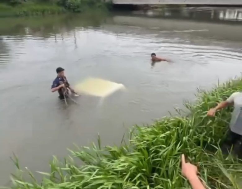 KARAWANG – Sebuah mobil pick up berwarna putih hilang kendali dan menyebabkan terjun ke saluran irigasi di Jembatan Belendung, Desa Belendung, Kecamatan Klari, Kabupaten Karawang, pada Sabtu (17/1/2026). Kendaraan tersebut berhasil dievakuasi oleh petugas pemadam kebakaran dibantu warga setempat.