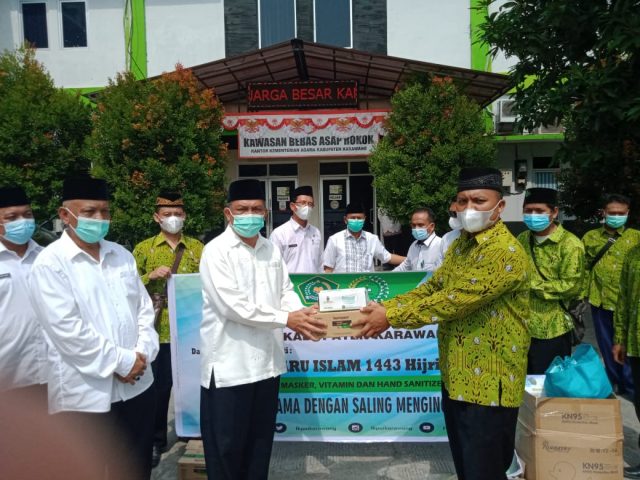 Kasie Bimas Kemenag Karawang, H. Yakub Lubis Al Pauzi menerangkan, Satker Bimas, Kelompok Kerja Penyuluh (Pokjaluh) dan Forum Komunikasi (FK) Penyuluh Agama Islam (PAI) bersama-sama membagikan masker, hand sanitizer dan vitamin ke pengguna jalan di Karawang.