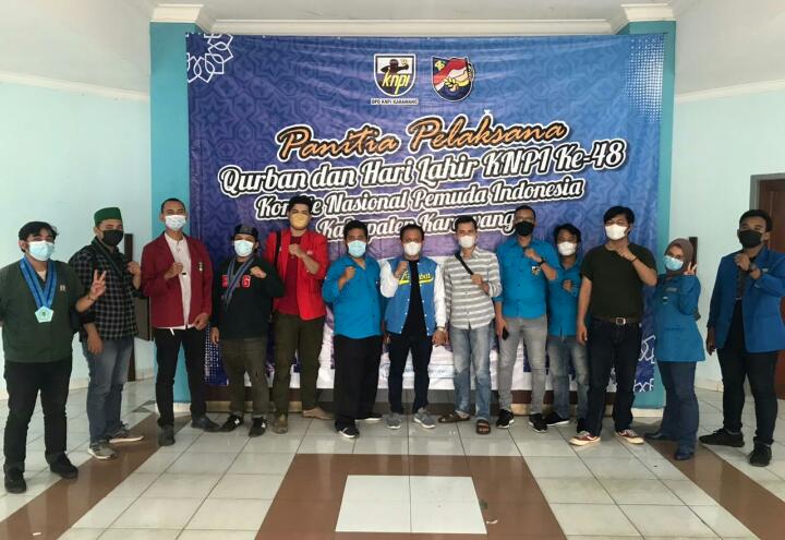 Berbarengan dengan susana Idul Adha,Komite Nasional Pemuda Indonesia (KNPI) Kabupaten Karawang merayakan hari jadi KNPI ke-48 Tahun dengan simbolis memotong tumpeng dan membagikan daging kurban kepada masyarkat sekitar dan anak yatim.