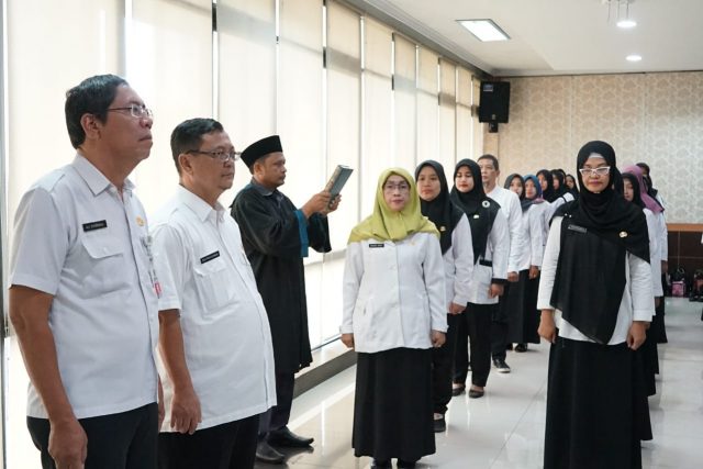 “Saya ucapkan selamat kepada bapak ibu yang telah dilantik dan diangkat sumpahnya, selamat bekerja, bekerjalah dengan ikhlas disertai dengan mengikuti peraturan yang diberlakukan,” ucapnya.