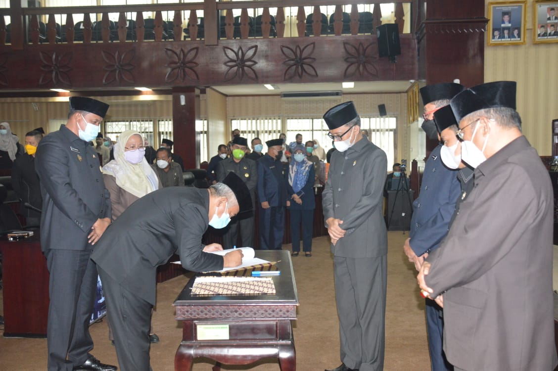 KOTA BEKASI – Sidang Paripurna penyampaian Laporan Keterangan Pertanggungjawaban Tahun anggaran 2020 telah ditandatangani bersama Wali Kota Bekasi Rahmat Effendi dan Ketua DPRD Kota Bekasi Chairumman J. Putro di Kantor DPRD Kota Bekasi, Jalan Chairil Anwar Kota Bekasi, Senin ( 5/4/21)