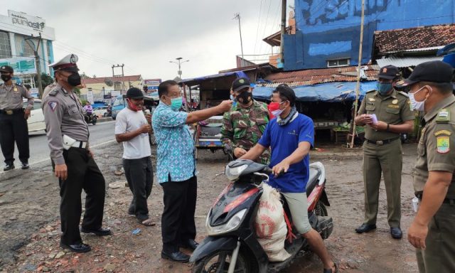 Untuk menekan serta memutus mata rantai Covid-19, Satgas Covid-19 Kecamatan Jatisasi lakukan operasi yustisi sampai ke pasar dan pertokoan di sepanjang Jalan Raya Jatisari.