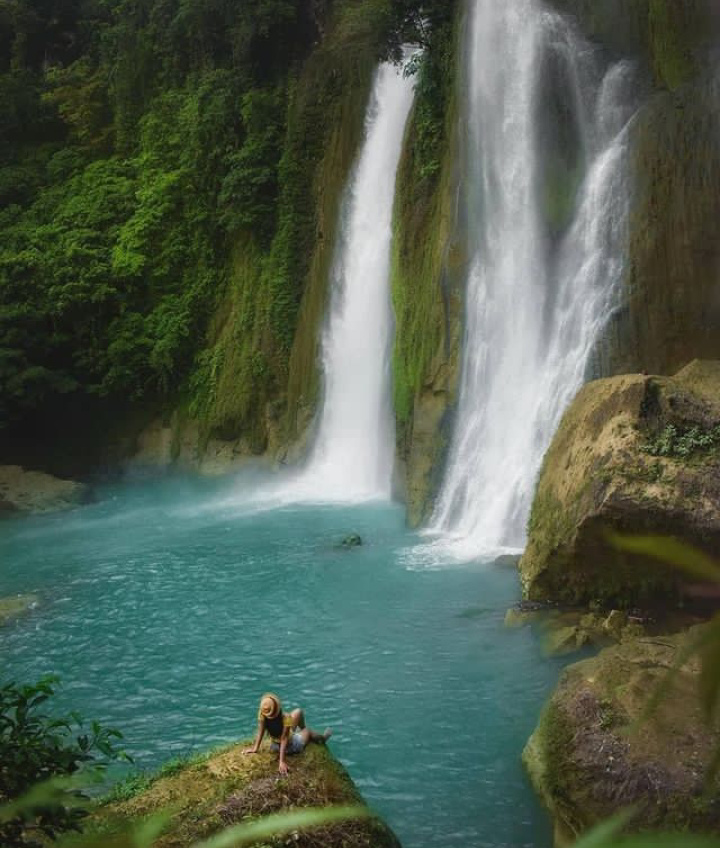 Kedua titik air terjun dapat terlihat dengan jelas sedangkan yang satu agak tersembunyi dengan tebing yang menghadap ke arah timur. Masing-masing air terjun mempunyai nama masing.
