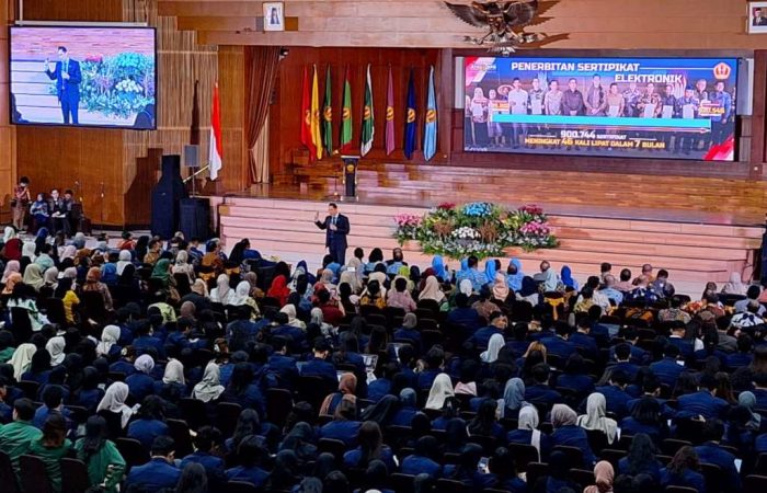 BANDUNG – Menteri Agraria dan Tata Ruang/Kepala Badan Pertanahan Nasional (ATR/BPN), Agus Harimurti Yudhoyono (AHY), menyampaikan kuliah umum pada rangkaian Dies Natalis Universitas Padjadjaran (UNPAD) pada Kamis (19/9/2024). Di hadapan para mahasiswa, ia menguraikan perkembangan penerapan Sertipikat Tanah Elektronik yang sedang digalakkan Kementerian ATR/BPN.