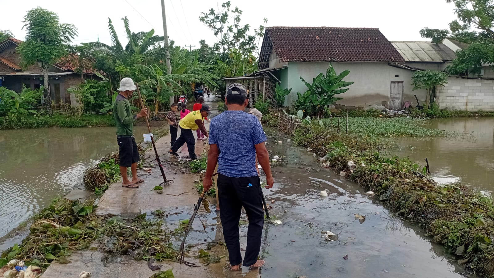 Dalam kegiatan kerja bakti tersebut, warga membersihkan lumpur dan sampah menggunakan peralatan sederhana seperti sekop, cangkul, dan ember. Partisipasi warga, termasuk para pemuda, turut memberikan semangat tersendiri dalam kegiatan gotong royong tersebut.