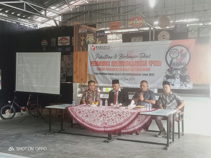 KARAWANG- Panwaslu Kecamatan Tegalwaru resmi melantik 9 orang Pengawas Kelurahan atau Desa (PKD) untuk Pilkada 2024, acara digelar di Rumah Makan Empangsari, Karawang.