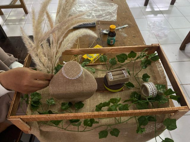 Aneu memberikan tugas dengan tema yang beragam, saat ini siswa kelas XII ditugaskan membuat hiasan dan hantaran pernikahan dari barang-barang bekas.