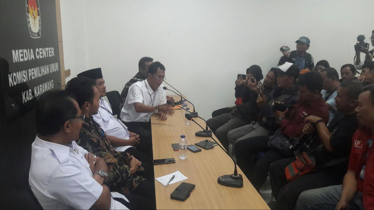 Pasangan ENAK tiba di kantor KPU Karawang sekitar pukul 10.00 Wib. Pasangan ENAK diterima langsung Ketua KPU Karawang Miftah Farid didampingi empat anggota komisioner.