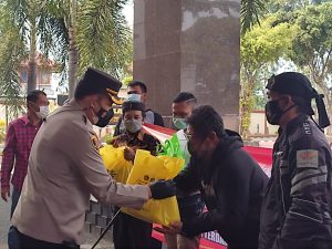 Dalam rangka peduli terhadap masyarakat terdampak Covid-19, Kapolres Karawang salurkan bantuan ke komunitas seni, organisasi mahasiswa, dan ormas islam dalam kegiatan bakti sosial.