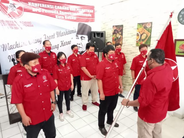 KOTA BEKASI – Dewan Pimpinan Cabang Pemuda Demokrat Kota Bekasi Gelar Konfrensi Cabang dan Pelantikan dengan Tema Besar “Machtsvorming Front Marhaenis menuju Trisakti Bung Karno”. Bertempat di rumah makan tutug oncom Tasik galaxi Bekasi Selatan.