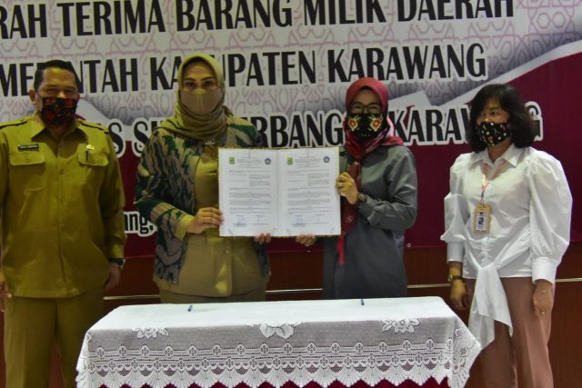 BEPAS – Setelah melalui tahapan proses yang panjang, pembebasan aset lahan tanah hibah Pemerintah Daerah Kabupaten Karawang akhirnya secara legalitas diserahkan kepada pihak Kampus Universitas Negeri Singaperbangsa (Unsika) Karawang selaku penerima hibah di Gedung Rektorat Kampus Unsika Karawang, Senin (21/9/2020) pagi.