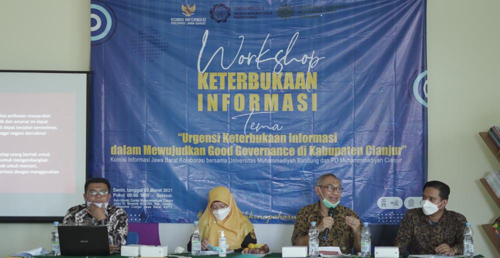 CIANJUR-Workshop Keterbukaan Informasi mengusung tema “Urgensi Keterbukaan Informasi Publik dalam Mewujudkan Good Governance di Kabupaten Cianjur. Kegiatan yang mengundang tiga narasumber dari berbagai bidang ini diselenggarakan di SMK Muhammadiyah Cianjur, Jln. Dr. Muwardi No. 120A, Kabupaten Cianjur.