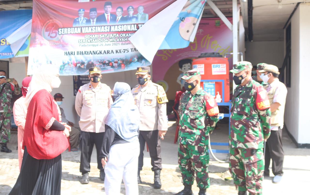 Serbuan Vaksinasi TNI-Polri Dan Pemda Kab Karawang di tinjau langsung Danrem 063/SGJ Kolonel Inf Elkines Vilando DK, SAP didampingi Forkopimda Karawang yakni Bupati Karawang dr Hj Cellica Nurrachadiana, Dandim 0604/Karawang Letkol Inf Medi Hariyo Wibowo dan Kapolres Karawang AKBP Rama Samtama Putra.