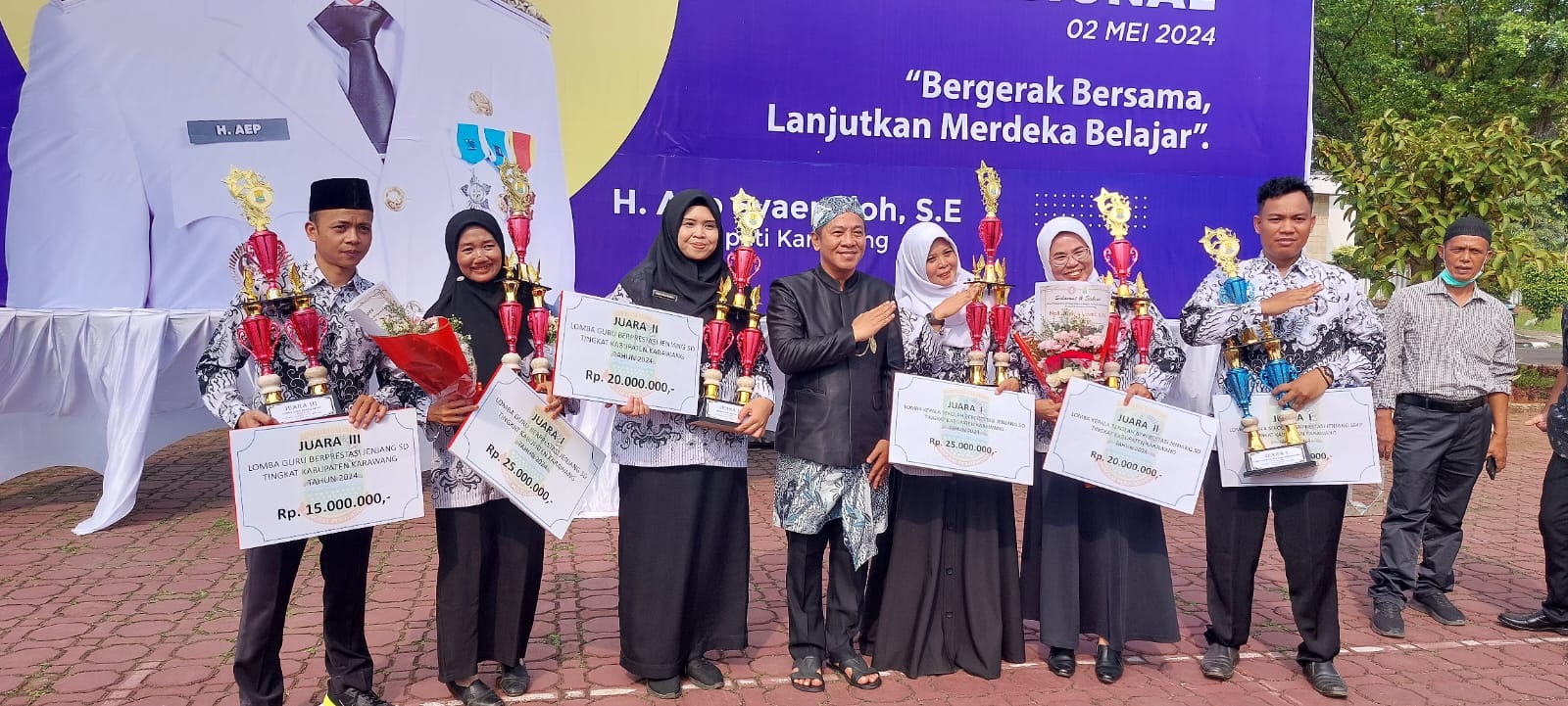 “Kami Pemerintah Daerah Kabupaten Karawang, mengapresiasi kepada seluruh guru dimana pembelajaran yang diberikan guru -guru bisa memberikan kualitas pendidikan yang baik bagi anak-anak didiknya,” kata Bupati kepada wartawan, usai memimpin Upacara Hari Pendidikan Nasional, Kamis (2/5/2024), di gedung Plaza Pemda Karawang.