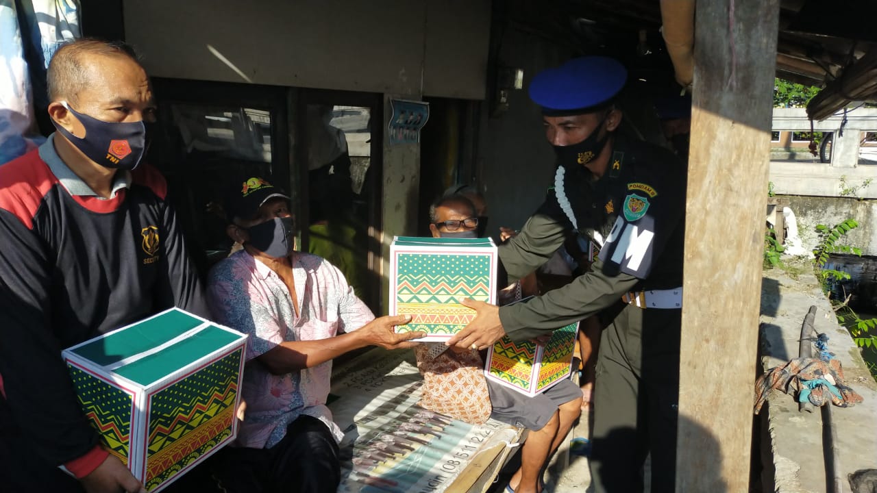 KARAWANG – Memperingati HUT ke 75 Polisi Militer, Sub Denpom III/3-1 Karawang melakukan bakti sosial kepada masyarakat tidak mampu berupa bingkisan berisi sembako. Pemberian bingkisan dibagikan dengan jemput bola mendatangi warga disejumlah tempatndi Karawang. Seluruh prajurit Sub Denpom III Karawang dipimpin langsung komandan Lettu Cpm I Made Astawan mendatangi rumah- rumah warga.