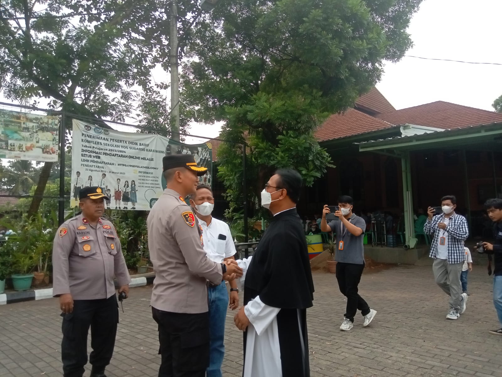 Saat memberikan sambutan di Gereja Kristus Raja Karawang, Kapolres mengatakan, jajaran TNI-Polri Kabupaten Karawang akan memastikan giat peribadatan di hari ini akan terselenggara dengan aman dan kondusif.