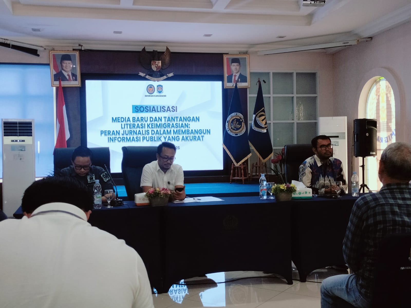 KARAWANG – Kantor Imigrasi Kelas I Karawang menggelar sosialisasi bertema Media Baru dan Tantangan Literasi Keimigrasian, serta membahas peran jurnalis dalam membangun informasi publik yang akurat. Kegiatan yang diikuti staf Kantor Imigrasi dan para jurnalis di wilayah Kabupaten Karawang ini berlangsung di Aula Kantor Imigrasi Karawang, Kamis (27/11/2025).