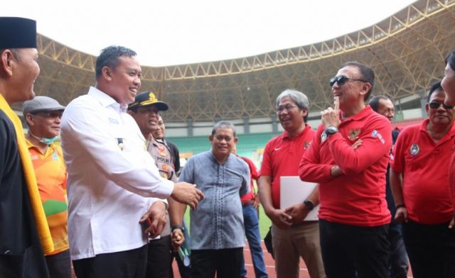 BEPAS, BekasiĀ – Selasa, (3/3/2020) Ketua PSSI Mohammad Iriawan menyambangi Stadion Patriot Candrabaga kota Bekasi dengan disambut Wakil Wali Kota Bekasi Tri Adhianto, Kepala Dinas Pemuda Olahraga Kota Bekasi Zarkasih, Ketua Koni Kota Bekasi Abdul Rasyad Irwan.