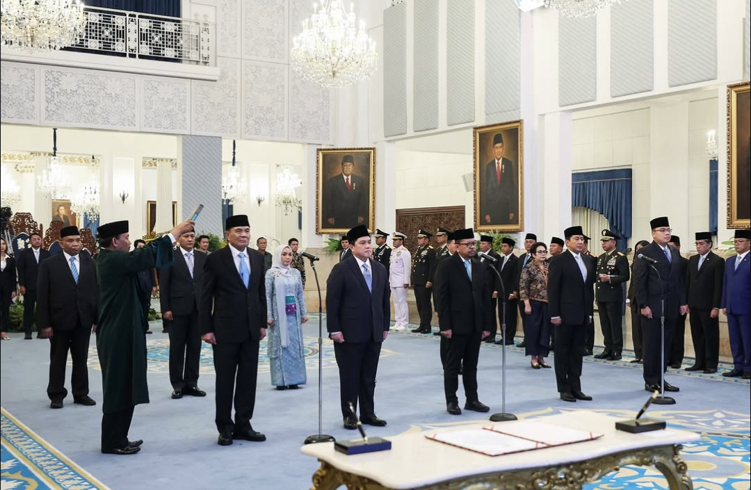 Para menteri dan wakil menteri dilantik berdasarkan Keputusan Presiden Republik Indonesia Nomor 96/P Tahun 2025 tentang Pemberhentian dan Pengangkatan Menteri dan Wakil Menteri Negara Kabinet Merah Putih Periode Tahun 2024-2029.