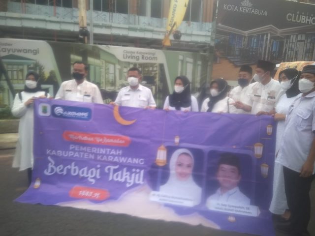 KARAWANG- Dinas Pengendalian Penduduk dan Keluarga Berencana (DPPKB) Kabupaten Karawang melaksanakan aksi sosial pemberian paket makanan dan minuman untuk berbuka puasa bagi masyarakat dan para pengguna jalan, di depan bunderan Tugu Tani, Jl. Kertabumi Kabupaten Karawang, Rabu (20/4/2022)