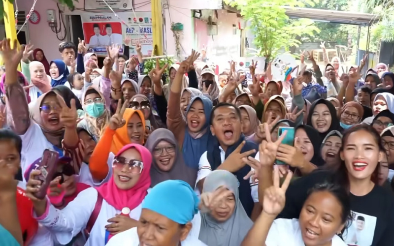 Dalam pantauan awak media, Cabup Karawang, Aep Syaepuloh dikerumuni emak-emak untuk memberikan dukungan dan menerikan yel-yel untuk Paslon Aep-Maslani.