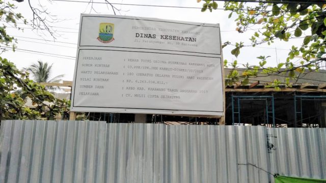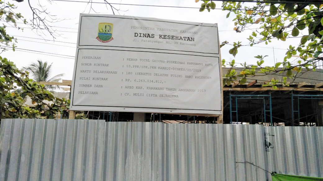 BEPAS, KARAWANG – Pembangunan gedung Puskesmas Karawang Kota senilai Rp6,2 Miliar yang bersumber dari APBD Kabupaten Karawang tahun anggaran 2019, terancam terhenti karena diduga pihak pelaksana pekerjaan yakni CV Multi Cipta Sejahtera kehabisan modal.