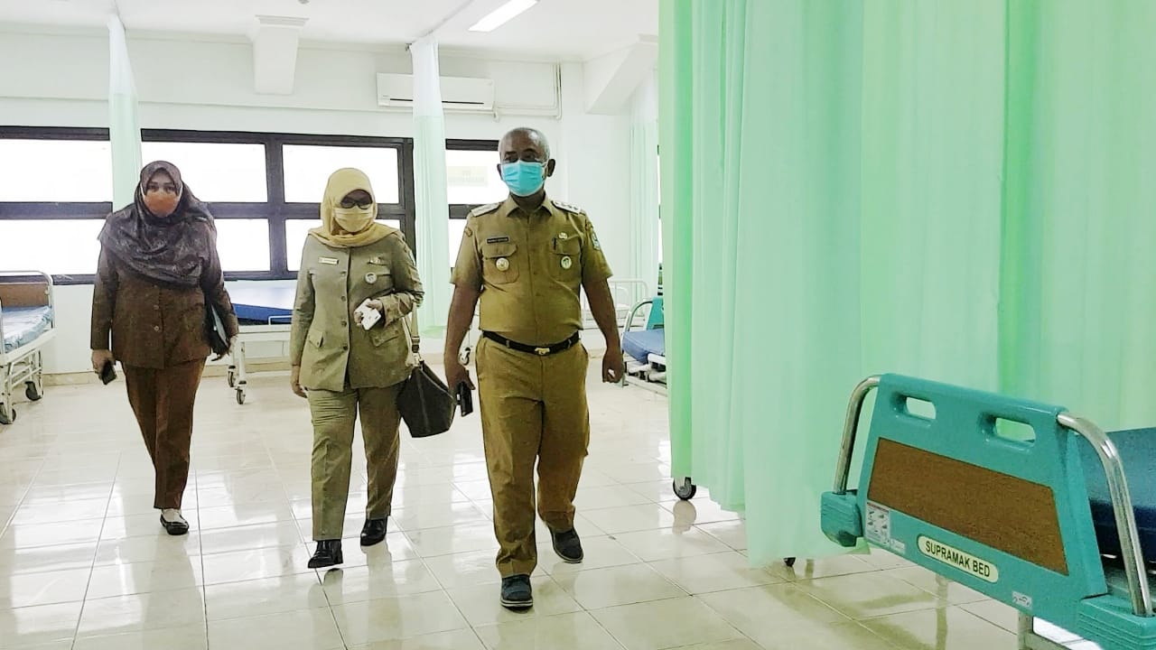 BEPAS – Wali Kota Bekasi, Rahmat Effendi bersama Kepala Dinas Kesehatan Kota Bekasi, Tanti Rohilawaty dan Kepala Bidang Pelayanan Kesehatan Dinas Kesehatan Kota Bekasi, dr. Rina mengecek kesiapan di Rumah Sakit Darurat (RSD) Stadion Patriot Candrabhaga Kota Bekasi.